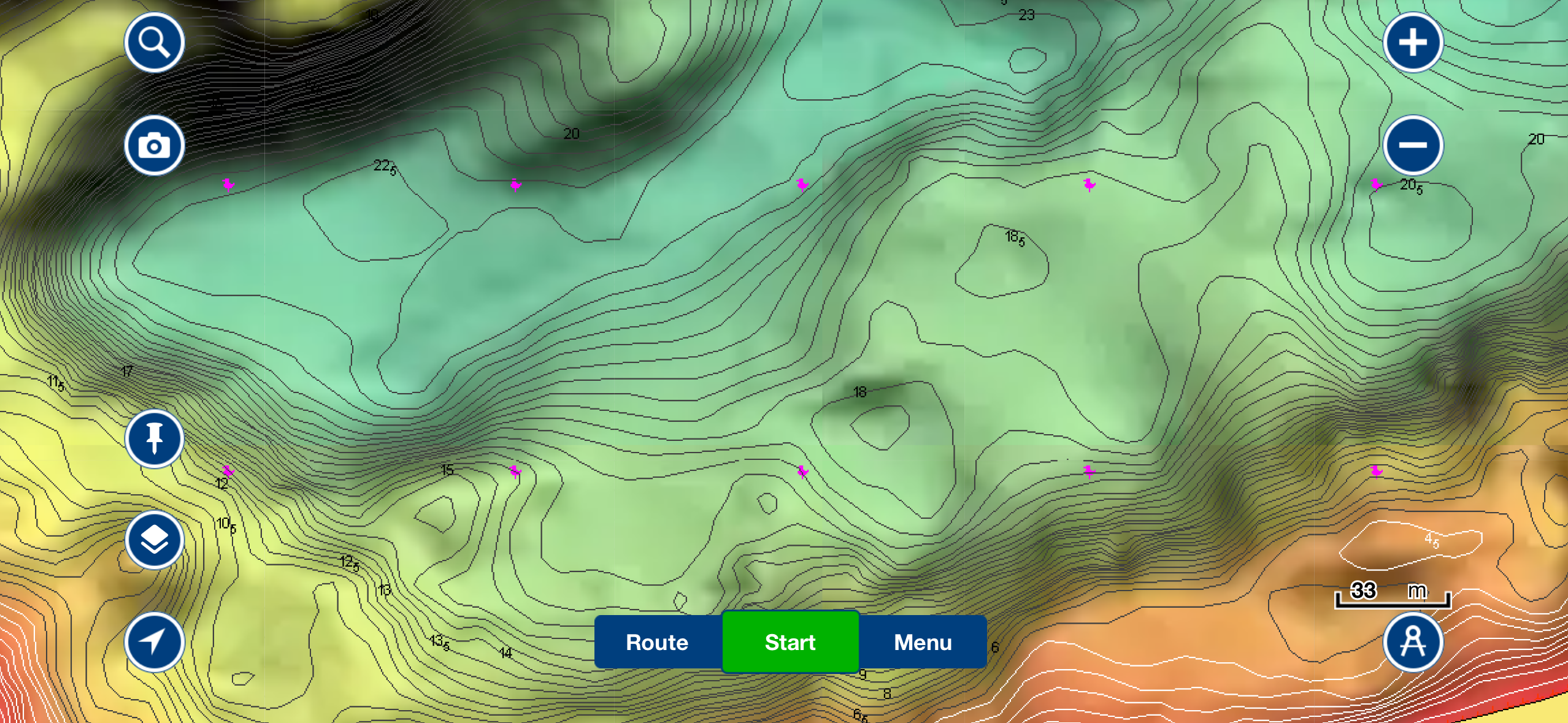 Zie je een interessante plek? Dan kun je daar direct een waypoint plaatsen. Zo leg je exact vast waar een steile rand begint, waar een plateau afloopt of waar een opvallende structuur ligt. Deze waypoints blijven opgeslagen in de app en zijn later op het water direct beschikbaar.